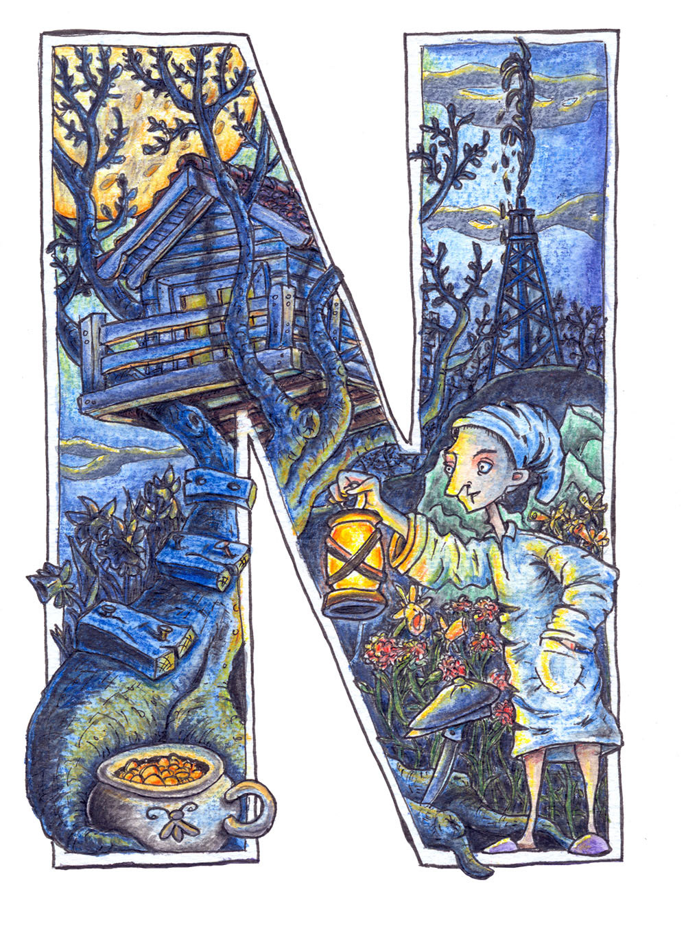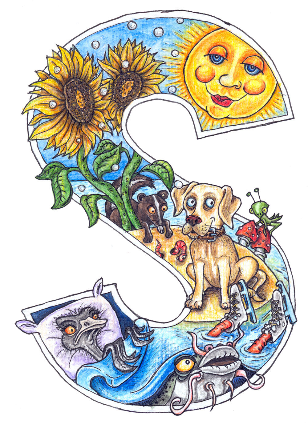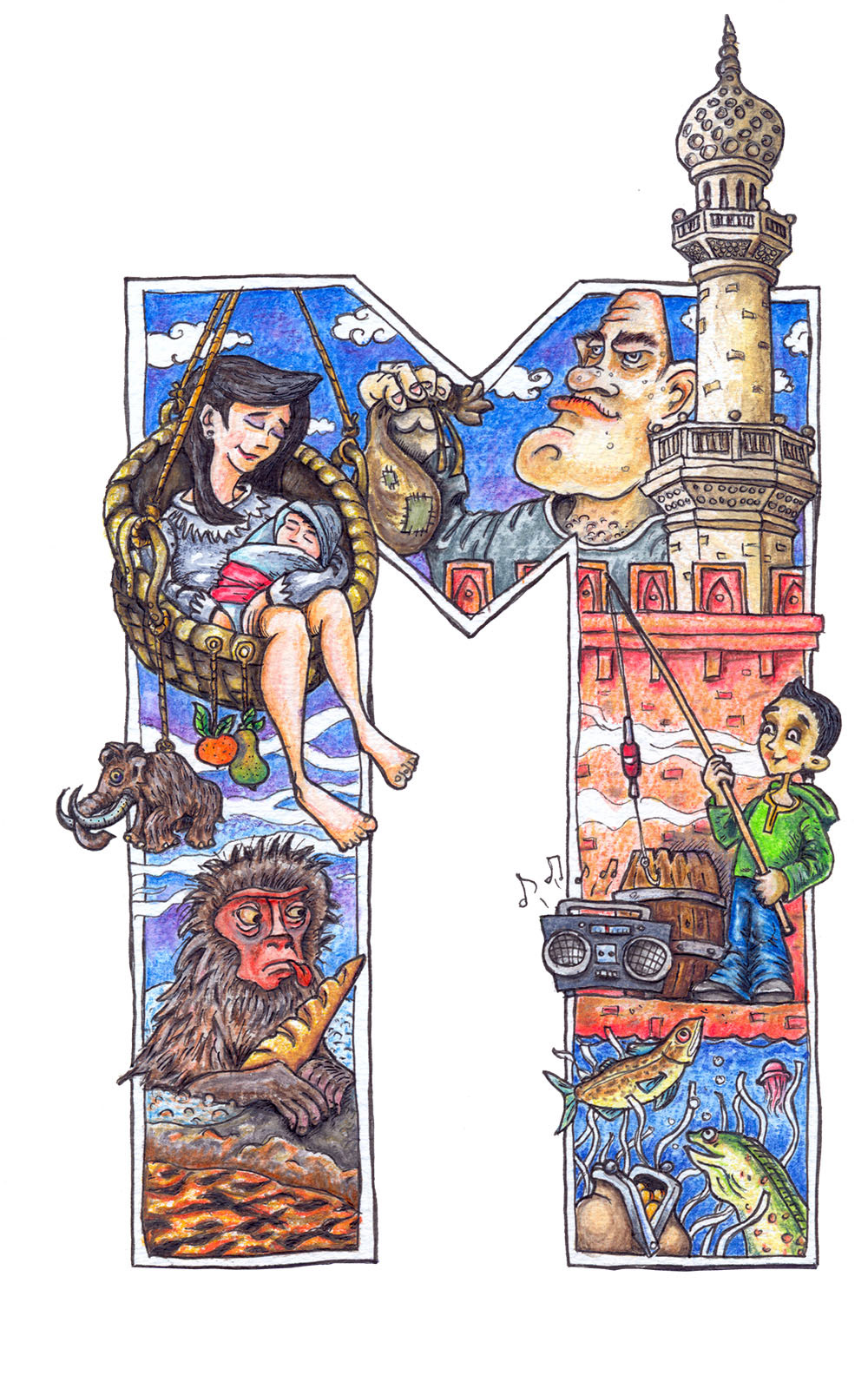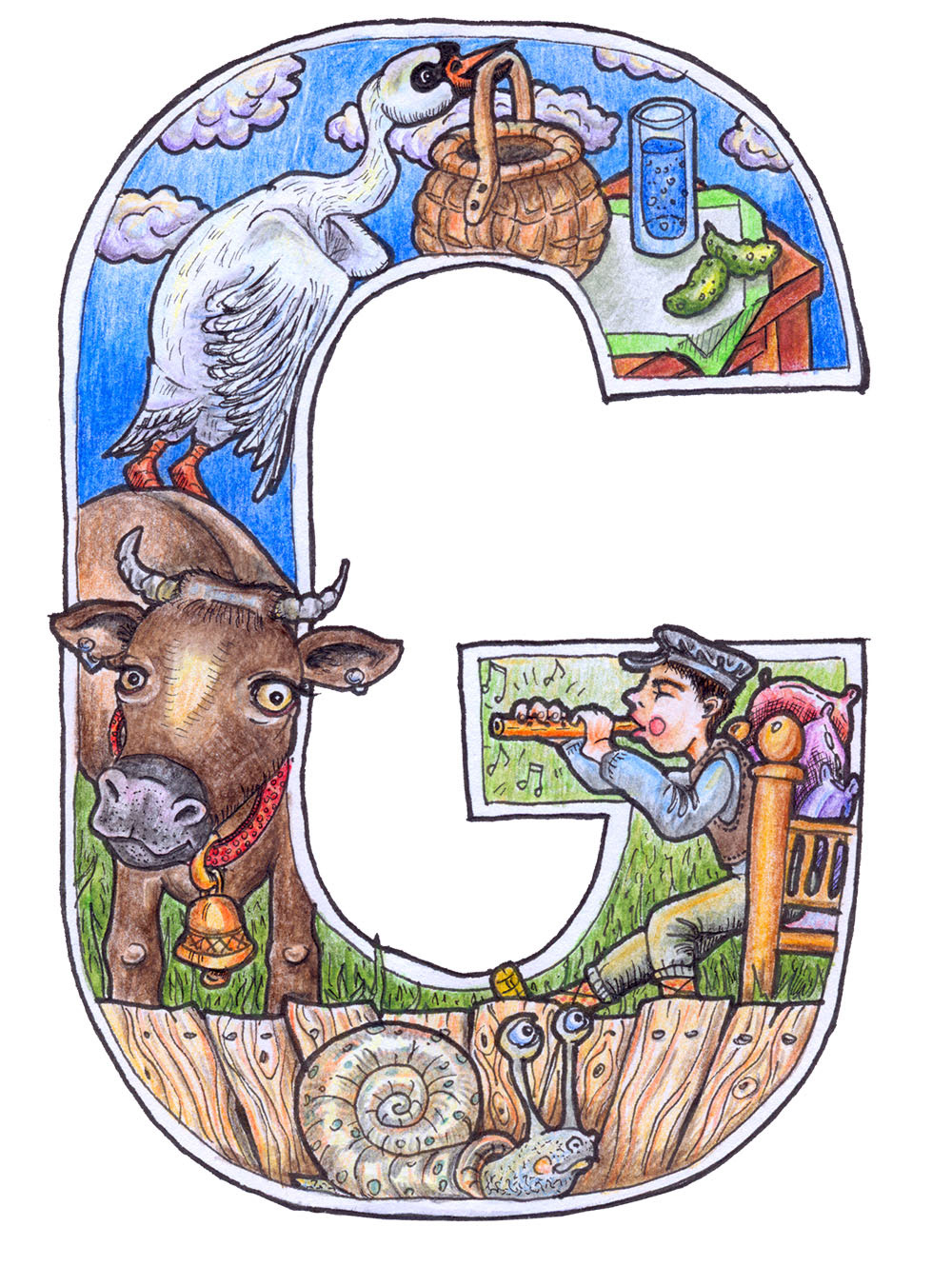 Why learning alphabet should be boring? Each letter consists of nouns starting with a particular letter, and there are more than one. This is a great book to spend some time on.